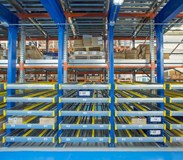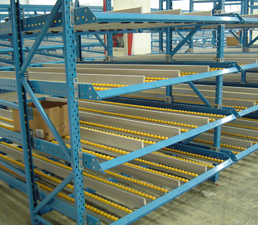 Carton Flow can dramatically improve warehouse efficiency by organizing product and rotating stock automatically. Long, straight, dedicated lanes maintain product organization and keep labour costs down. Storage space can be increased up to 60% by using a minimum of 22% less floor space, The simplicity of gravity driven systems requires less capital than maintenance-prone automated systems.