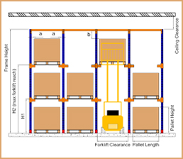 Drive-In pallet racking systems are cost-effective solution to high-density storage. This static system has rails running the depth of the rack for pallet placement. The only limitation to the depth of pallet storage is the capability to drive deep within the system.