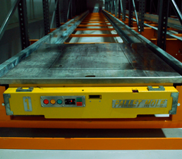 Pallet Mole enables “aisle free” pallet racking to provide a much higher density of storage.